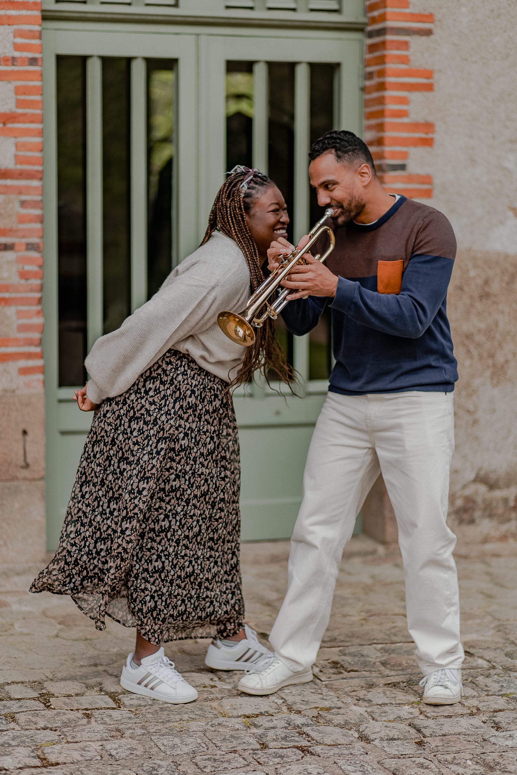 La LOVE SESSION doit être une séance qui vous ressemble. Si vous êtes musicien comme Robin, faites comme lui. Robin a emmené sa trompette et nous a joué des morceaux et surtout il a fait dansé Axelle, qui s’est complètement relâchée.